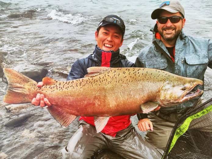 50kg前後にまで成長するキングサーモンの引きは強烈です。多くのトラウトファンの憧れの魚と言えるでしょう。