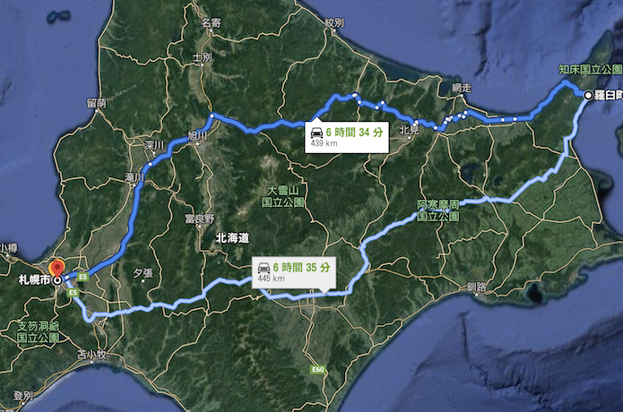 道外からの遠征は女満別空港まで飛行機を利用し、レンタカーでアクセスしましょう。