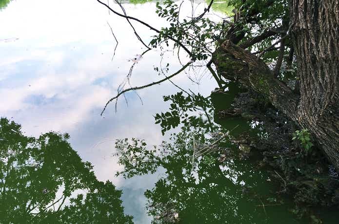 ブラックバスついていそうな日陰や窪みなど、いかにも怪しいスポットに、そっとスプーンを落とします。