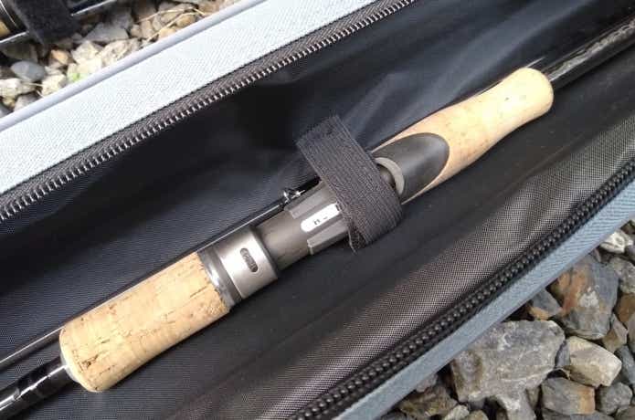 内側にはマジックテープ(面ファスナー)のベルトが2本ありロッドを内側で固定できます。
