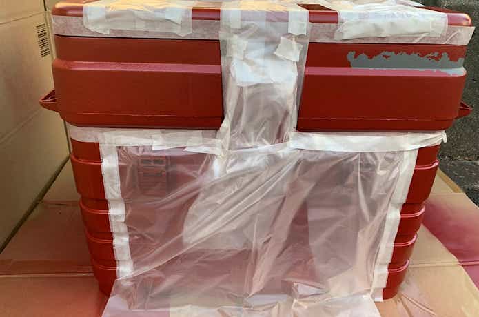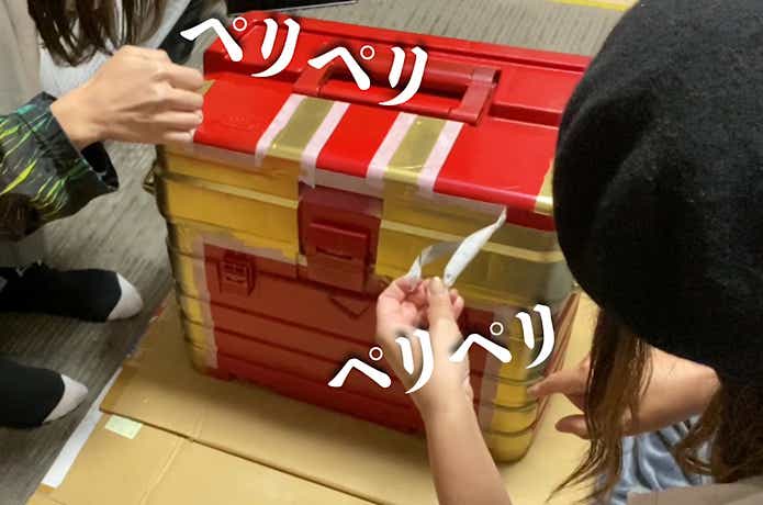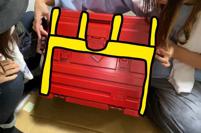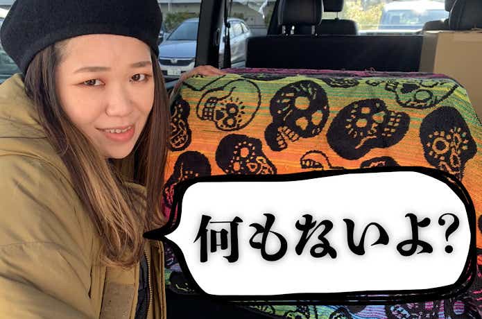 宝箱にデカめの布を上からかけて家から車に積み込む。