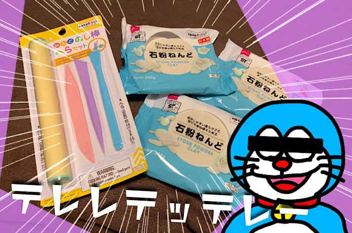 ダイソーの石粉粘土とへら、のし棒セット〜