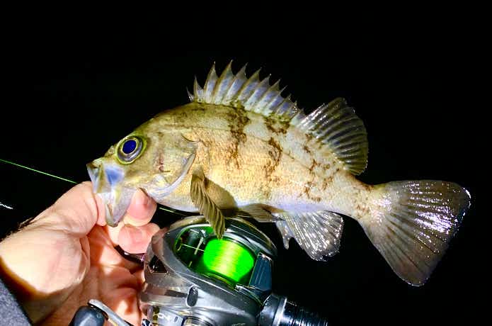 アジ・メバル狙いの続きで、ジグヘッドを底に沈ませて狙っても良いですし、近年は夜釣りでもトラブルなく使えるようになったベイトフィネス系の釣り方もとても楽しいものです。
