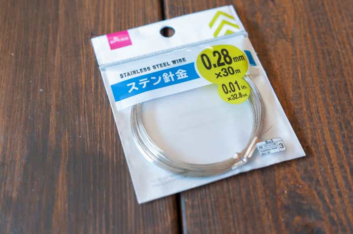 ホームセンターに行けば、太さや材質など様々なものがありますが、今回はダイソーで購入。