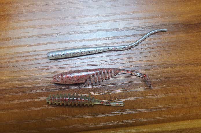 テールが大きいものは推進力がある程度ないと動かないので、イマイチ!ピンテールやシャッドテールでも柔らかいものがおすすめです。