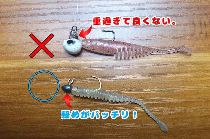 もう少し沈めたいからといってジグヘッドを重くするのはあまりよくありません。
