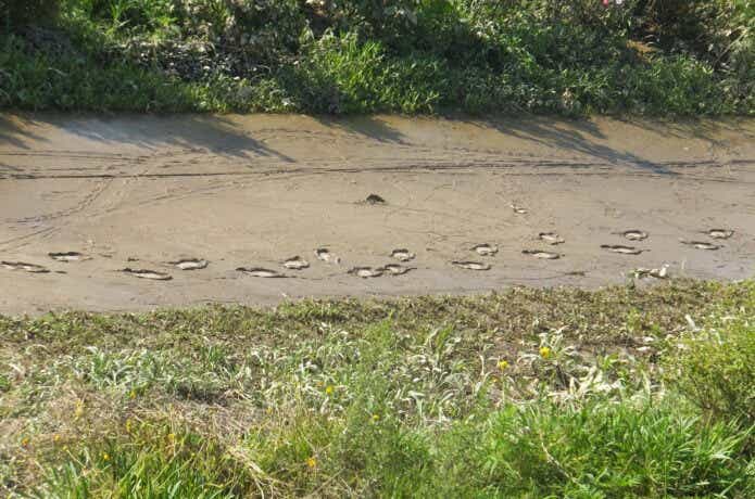 雨はカエルやミミズなどが岸から落ちてくることがあります。