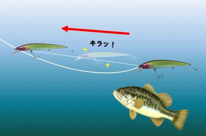 ラインを瞬間的に張ることでルアーが左右に飛びながらアピールします。