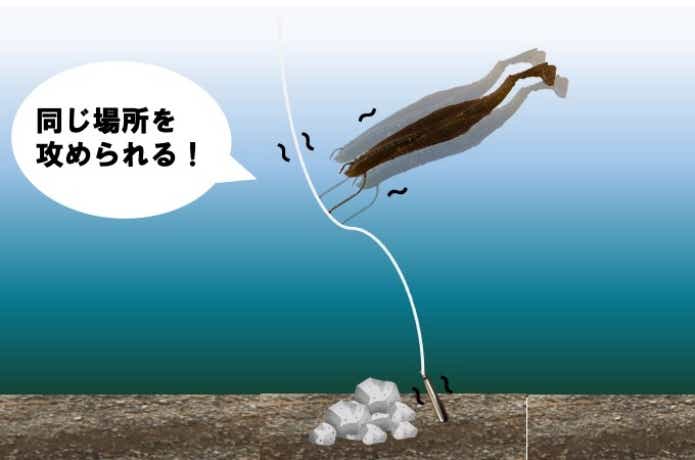 常にラインを張ったり緩めたりを繰り返す動きは、深いバイトが出ることが多く、違和感を与えないアクションのひとつと言えます。
