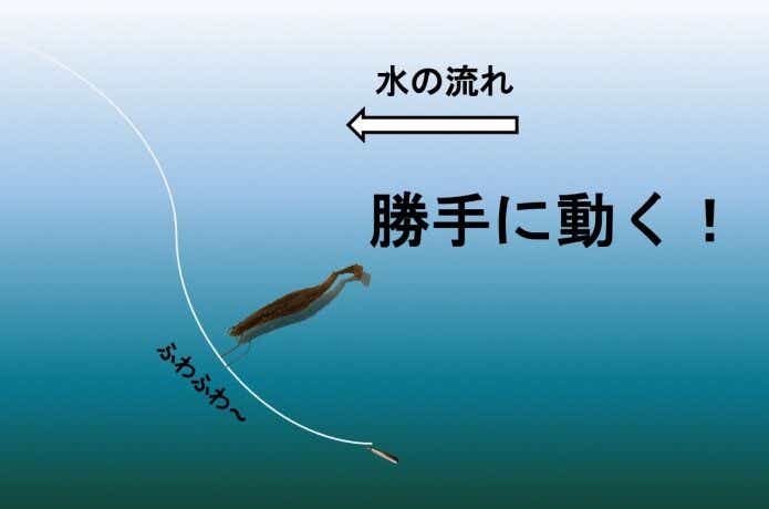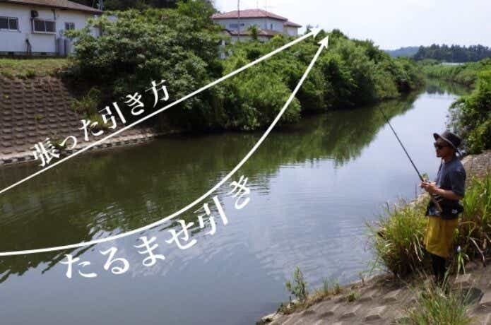 ラインを弛ませることで、ラインそのものが流れや重力に引っ張られ、より自然に近いアクションを演出することができます。
