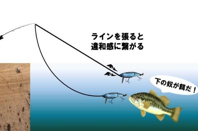 ラインをたるませることで、その存在感が薄れ、バスにも違和感を与えにくくなります。