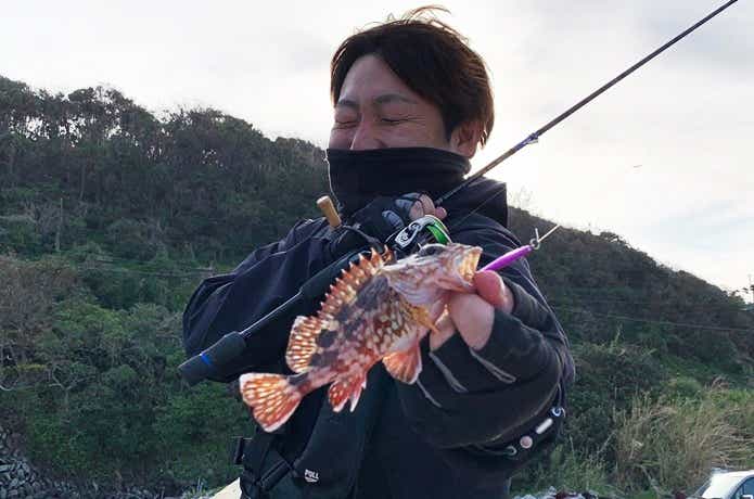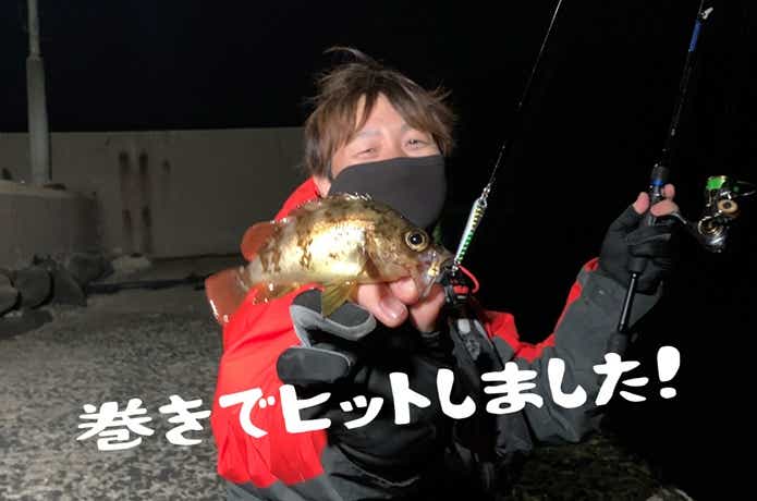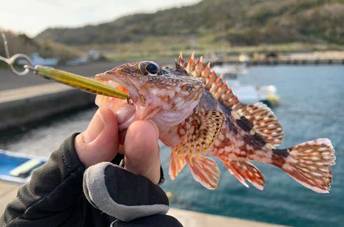 竿抜けポイントへマイクロジグを送り込むとフォール大好きカサゴ君がヒット!
