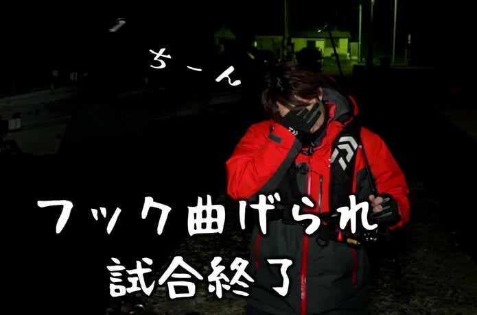 早巻きしていると足元でシーバスが猛烈アタック! が、フックを伸ばされ試合終了。