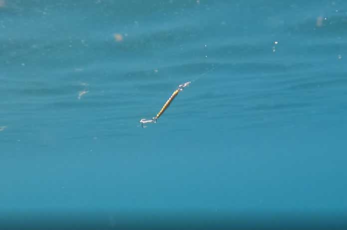 早く巻けば巻くほど水平姿勢となり、ボディを左右に揺らしながらスイミングしています。