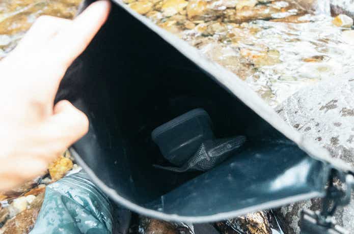 防水バッグをひとつ持っておけば、大切なモノが水没してしまうリスクを最小限にすることができます。釣りを快適にするためにも、もっておきたいアイテムです。