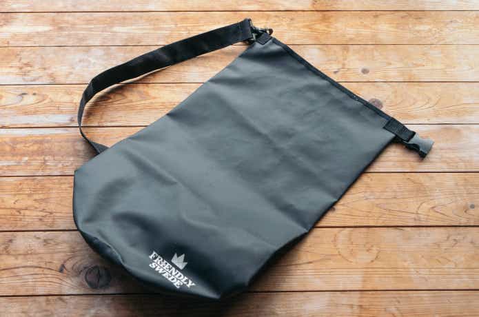 兎にも角にも、防水バッグです。雨に濡れようがへっちゃら。軽い荷物であれば、口をしっかりと閉めてあげることで、水の上に乗っけてもしばらくは浮いてくれます。