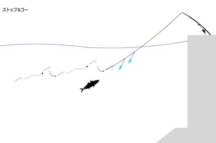 ただ巻きにストップを加え、喰わせるタイミングを作ったアクションです。