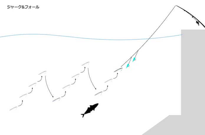 ジャークの間隔や回数、フォールの間隔などはいろいろ試してみてください。