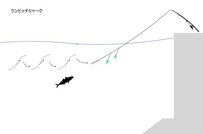 ワンピッチジャークとは、ハンドル1回転につきロッドを1回シャクるアクションです。