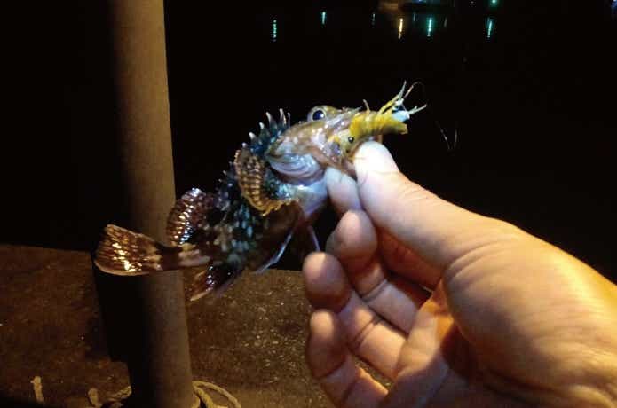 落とし込みに反応が無くなったので、今度はボトム狙いにシフト。すると、すぐにカサゴから反応が。