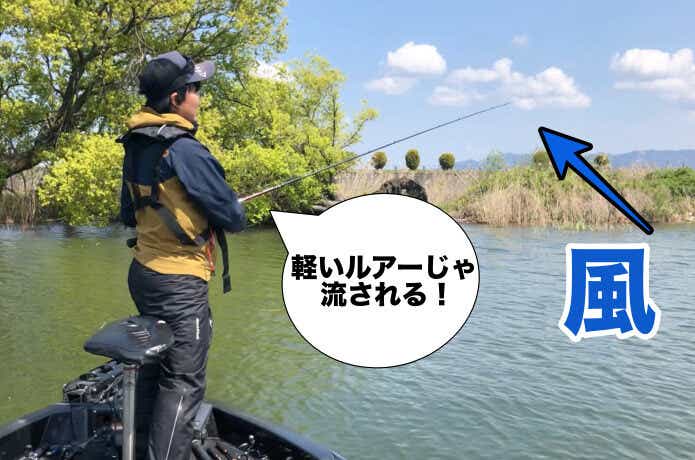 風が強い時はルアーを投げたり、操作するのが難しくなります。小さい=軽いルアーはそのような状況で機能しないことが多く、投げて操作しやすいサイズのルアーを投げるほうが釣果に繋がる可能性が高いでしょう。