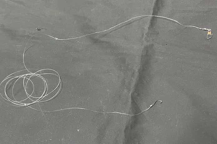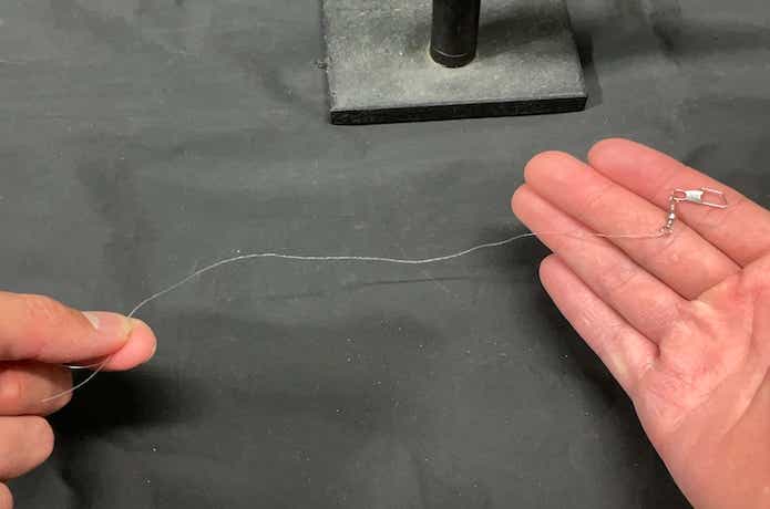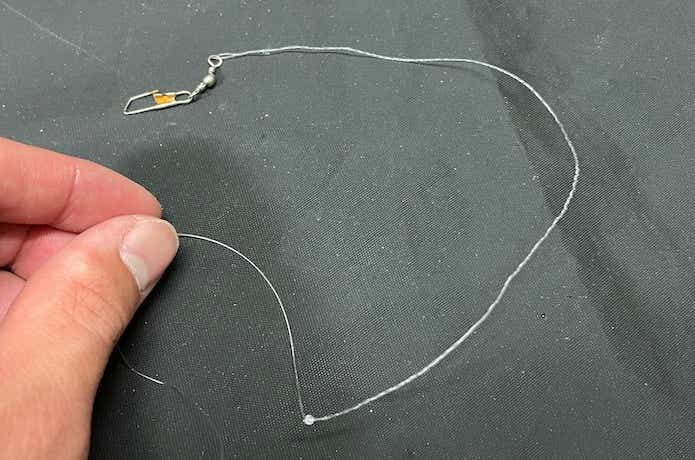 幹糸用のハリスを1ヒロ(約1.5m)カットして、スナップサルカンを通します。