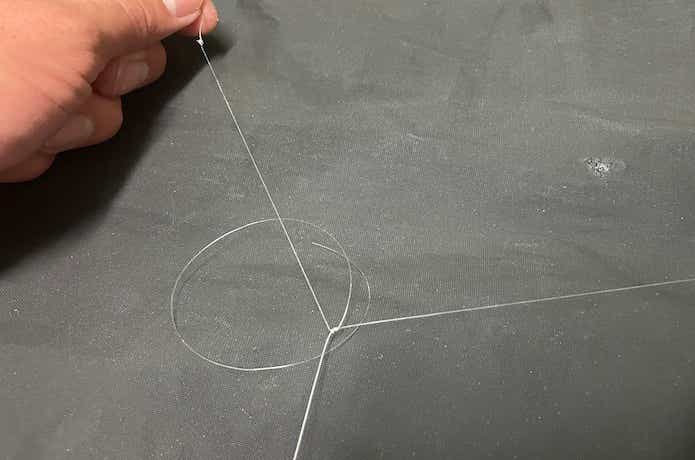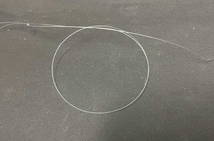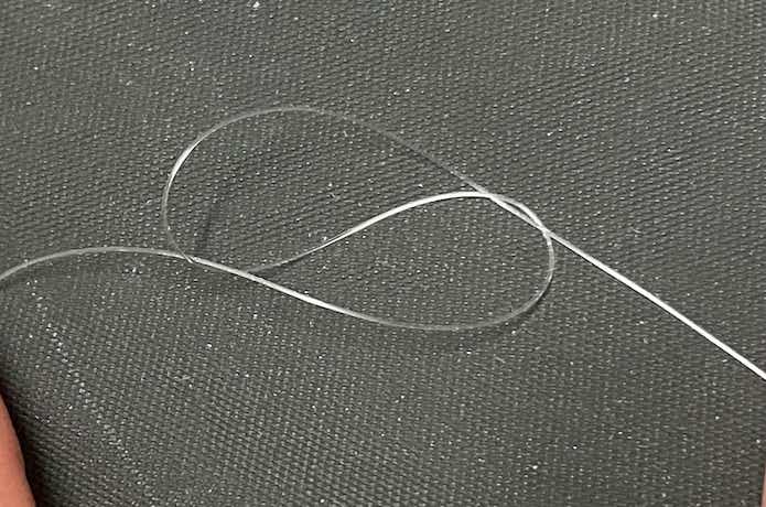 幹糸の端(砂ずりと逆側)と下針のエダスを束ねて輪を作ります。