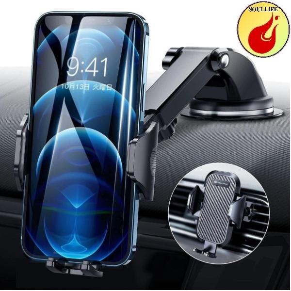 DesertWest 車載ホルダー 片手操作 2in1 スマホホルダー 粘着ゲル吸盤&エアコン吹き出し口式兼用