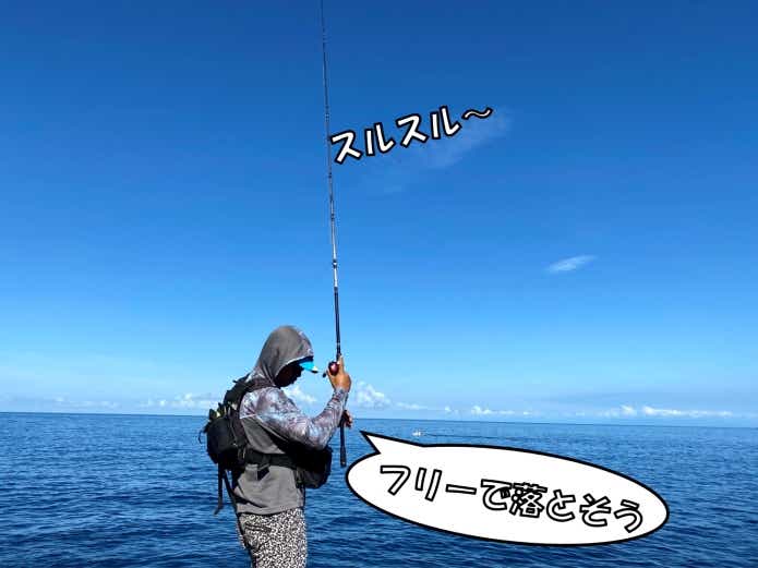 フリーフォールで最初の着底を取ることで、ラインを吹かした状態(水面に浮かべた状態)にすることができます。