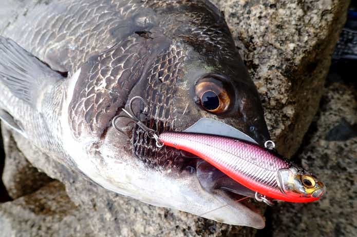 川底に棲む生き物を好んで食べるクロダイを狙う場合は、ジグヘッドを使ったワームやバイブレーションなどで川底を狙ってみましょう。