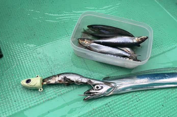 タチウオの喰いが渋い時に適しますが、身が柔らかいため、すぐにボロボロになってしまうのが難点です。