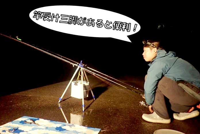 竿とリールは、なるべく地面には置かずに何かに立てかけるようにしましょう。竿立てがあるとなにかと便利ですよ!