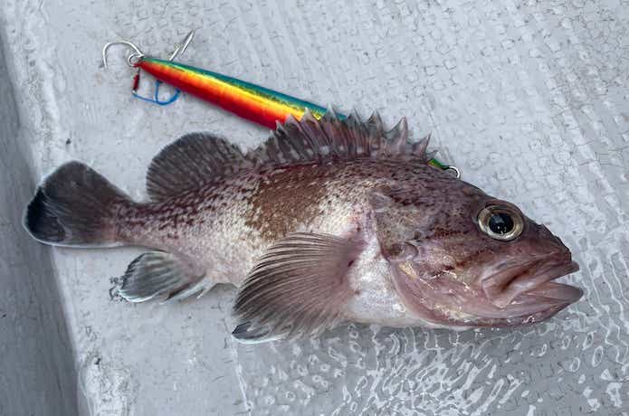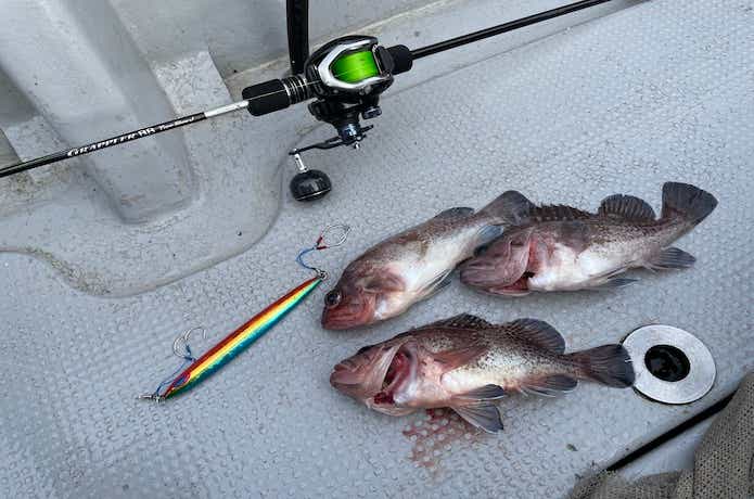 タヌキメバルを専門で狙う船はほとんどありませんが、沖メバル等を狙う根魚五目釣りやスロージギングでよく釣れます。