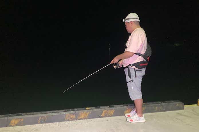 昼のサビキ釣りとは違い、夜は常夜灯に集まった魚を探して釣る夜のサビキ釣り。