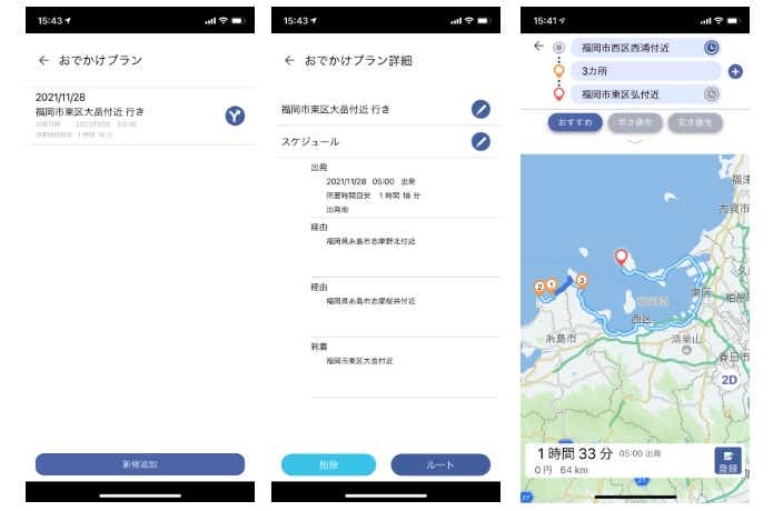 事前におでかけの計画を立てる時に便利なのが「おでかけプラン」機能。