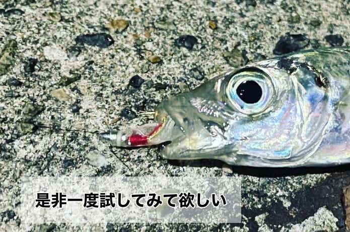 プラグや重いジグヘッドでは口を使わないシーンや、プランクトンや小さいエビなどを捕食している時などには最高に良いですね。