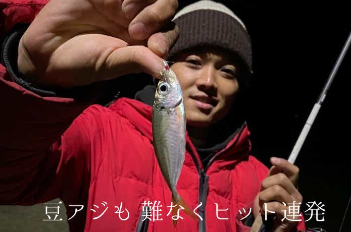 最大25cmほどのアジまで、びっくりするくらい釣れます。
