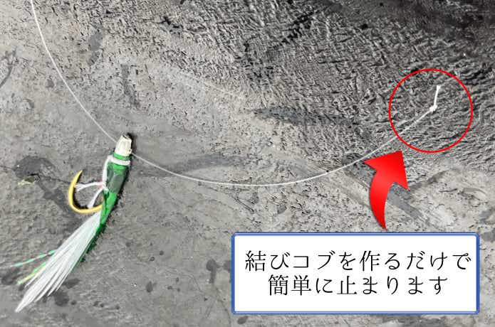 エイトノットがおすすめですが、リーダーが細すぎるとコブが抜けてしまいます。