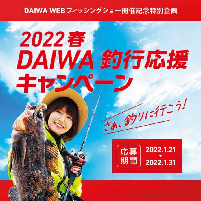 2022年1月21日(金)に開催された、ダイワオンラインフィッシングショーを記念して、『2022春 DAIWA釣行応援キャンペーン』が実施中です。