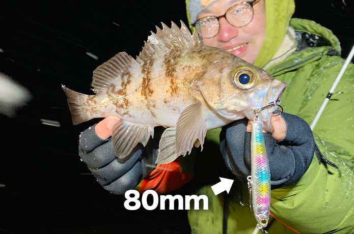 対象魚は「表層=メバル/宙層(中層)=シーバス・クロダイ/底層=ヒラメ(80mmのみ)」と表記されています。