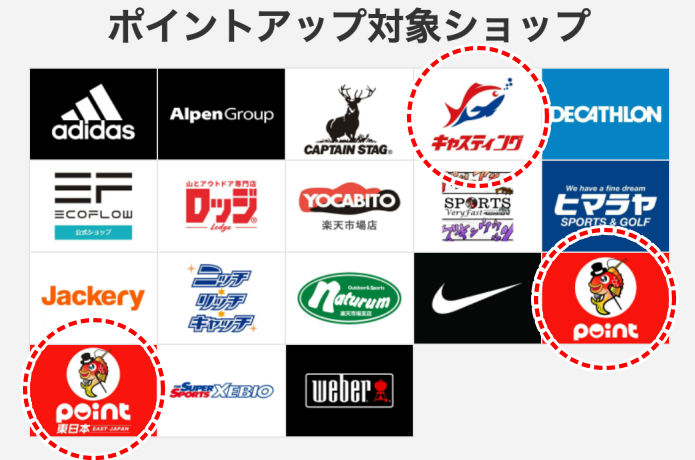ポイントアップ対象のお店には、釣具のポイント楽天市場店、釣具のキャスティング楽天市場店なども参加。
