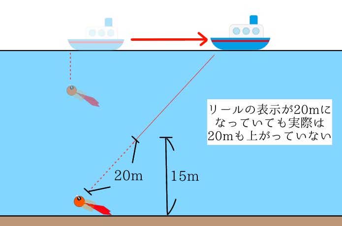 つまり、リールで20m分巻いたとしても、実際には底から20mも上がっていないのです。