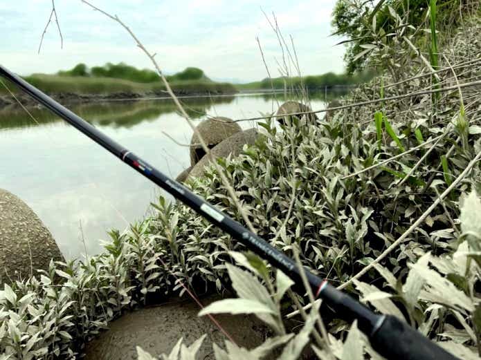 下げ潮では、川幅の狭い小規模河川のストラクチャー絡みや小さな支流との合流点、そして水門といった目に見える小場所をテンポよく打っていくランガン戦術を展開していきます。