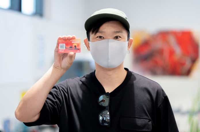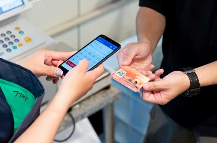 サンセットコインはスマホアプリとカード、どちらかで受け取り可能です。QRコードを読み取ってもらいチャージ完了。
