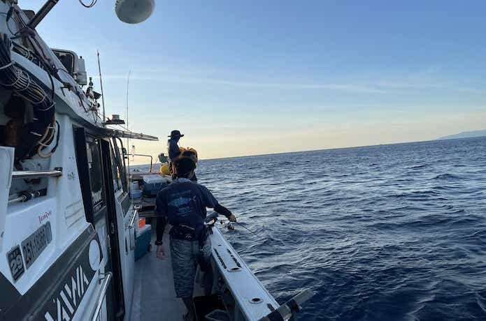 ポイントの水深は70m、開始時は15号のオモリが少し流される程度の潮でした。