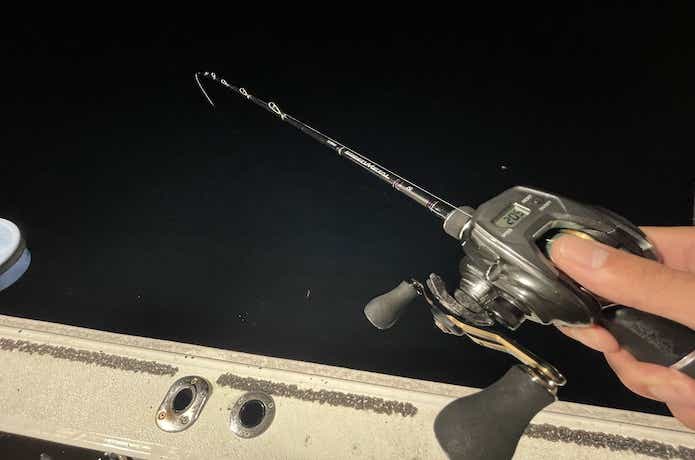 ロッドのベリー・バットが強いので、水深70mで25号シンカーをしっかりシャクれてアタリも取りやすいですね。