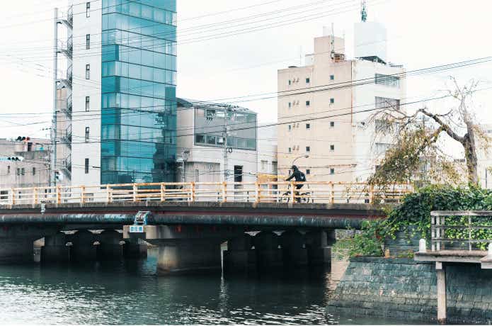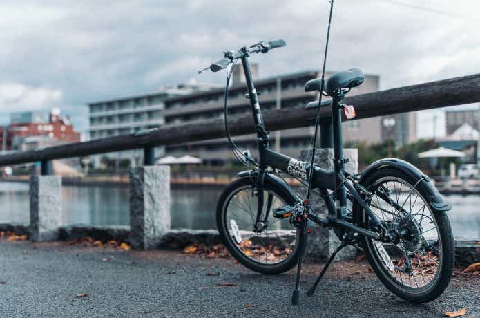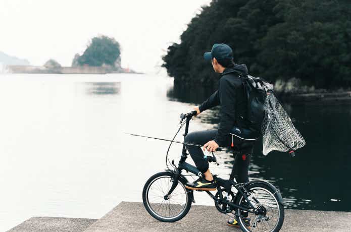 自転車を使ってのランガン。効率良く、テンポ良く釣りを展開できるのも、このスタイルの醍醐味です。