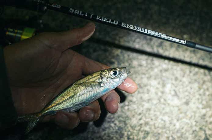 さて、同じロッドを夜の漁港で試してみます。人気ターゲットである、アジを狙ってみましょう。