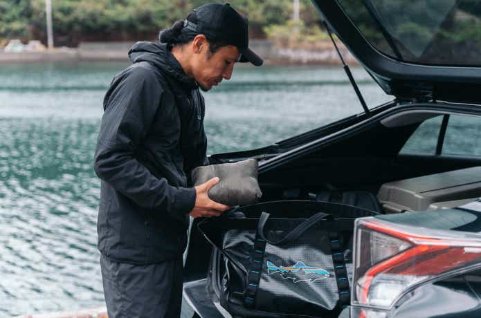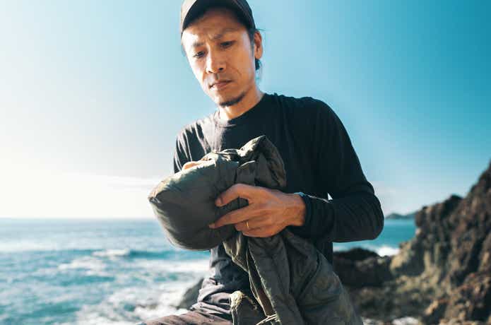 日が昇り、気温があがってきたら、コンパクトに収納できる。持っていく荷物が絞られてしまう地磯だからこそ、活躍が期待できるアウターです。
