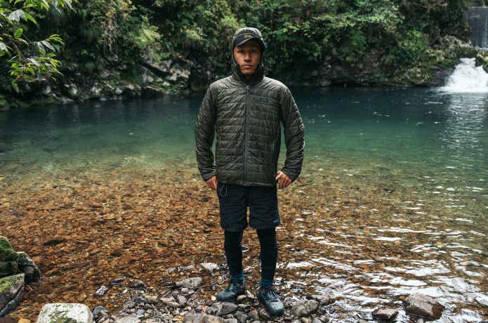 ナノ・パフ・フィッツロイ・トラウト・フーディを着て、いざ釣りへ